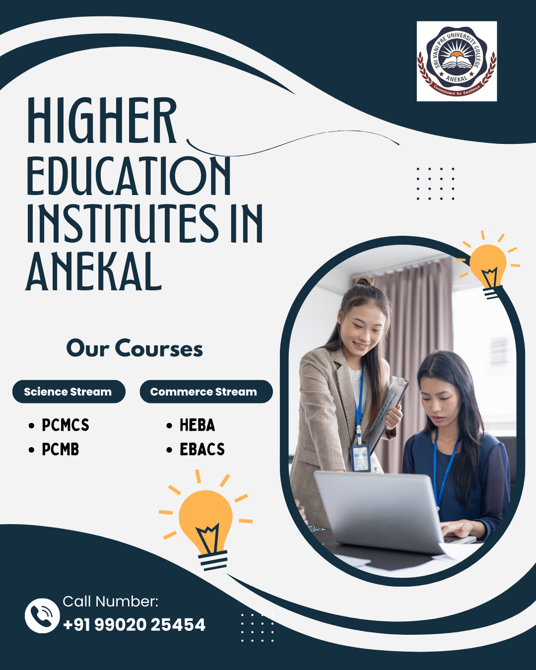 Srivani Institutions stands out among higher education institutes in Anekal for its commitment to academic excellence and career-oriented education. Offering Pre-University and undergraduate programs, the institution follows a structured curriculum supported by experienced faculty and modern facilities. With a strong focus on skill development, discipline, and holistic student growth, Srivani Institutions creates a supportive learning environment that prepares students for higher studies and professional success.